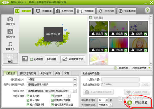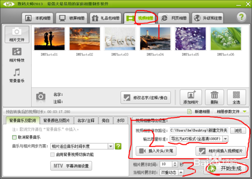 点击下面的开始播放,稍等一会就能看到做出来的相册效果了。如果要渲染成视频,点击视频相册,设置下最下面的视频相册导出设置,最后点击开始生成就可以出视频了。视频相册功能要注册登录,才能使用。