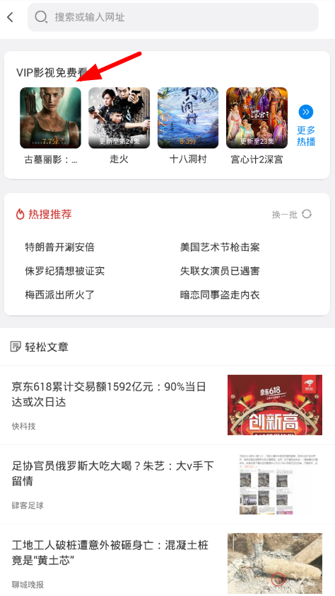 使用VIP浏览器免费看电影的简单操作先进入到VIP浏览器的首页点击左上角的横杠按钮,从中找到vip影视页面来进行查询