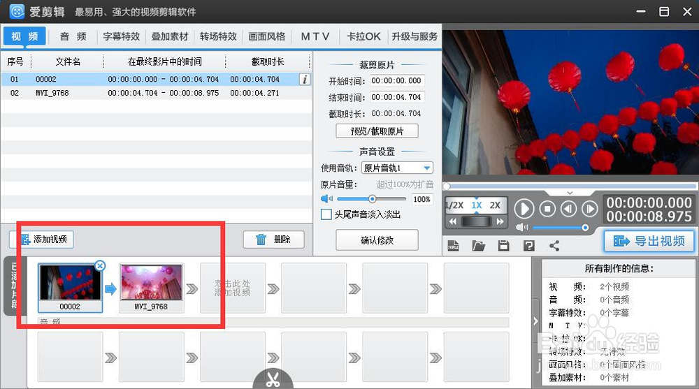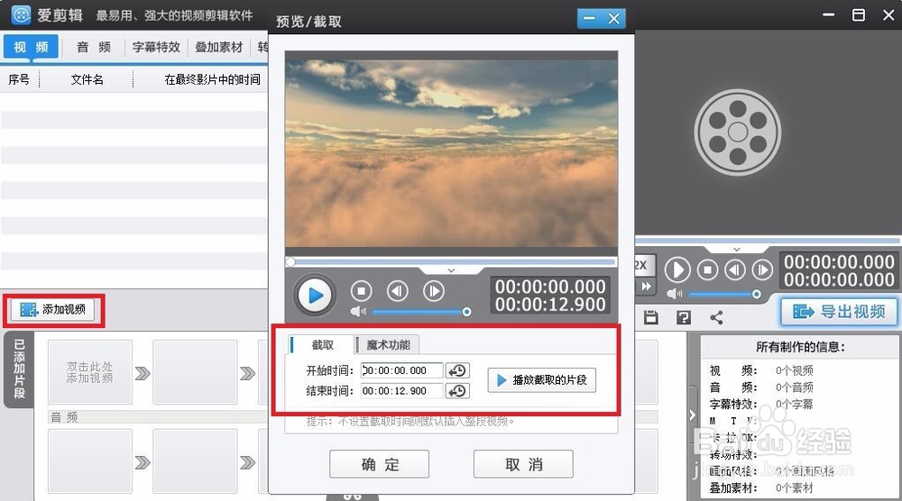 选择添加视频,此步骤可对视频长度进行截取,如图所示
