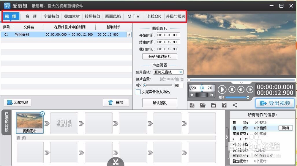 百度经验上传的视频大小限制在50MB之内,如果不喜欢爱剪辑的片头片尾,可以使用以下工具将其掐头去尾(减小视频体积)。
