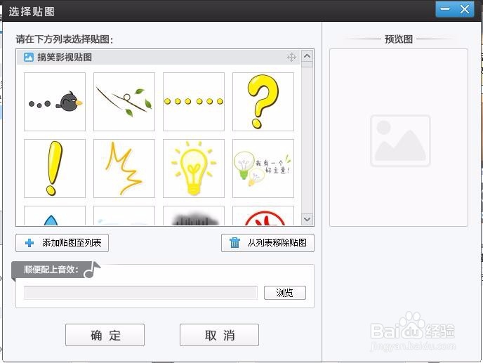 选择成功后,会出现贴图或相框素材库,根据喜好进行选择,也可为此特效配上音乐,如图所示
