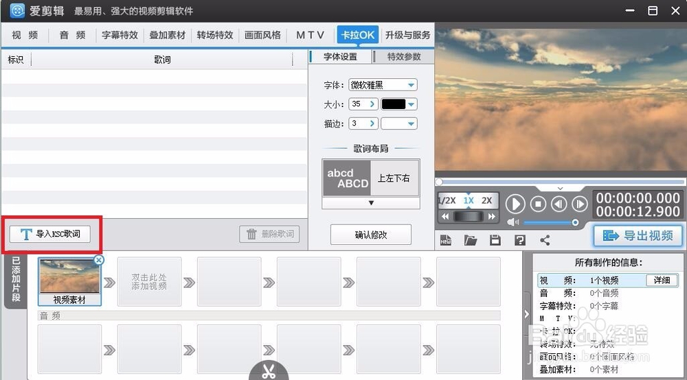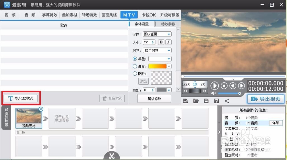 MTV/卡拉OK:添加MTV功能,需要倒入“LRC歌词”,添加卡拉OK,需要倒入“KSC歌词”,如图所示