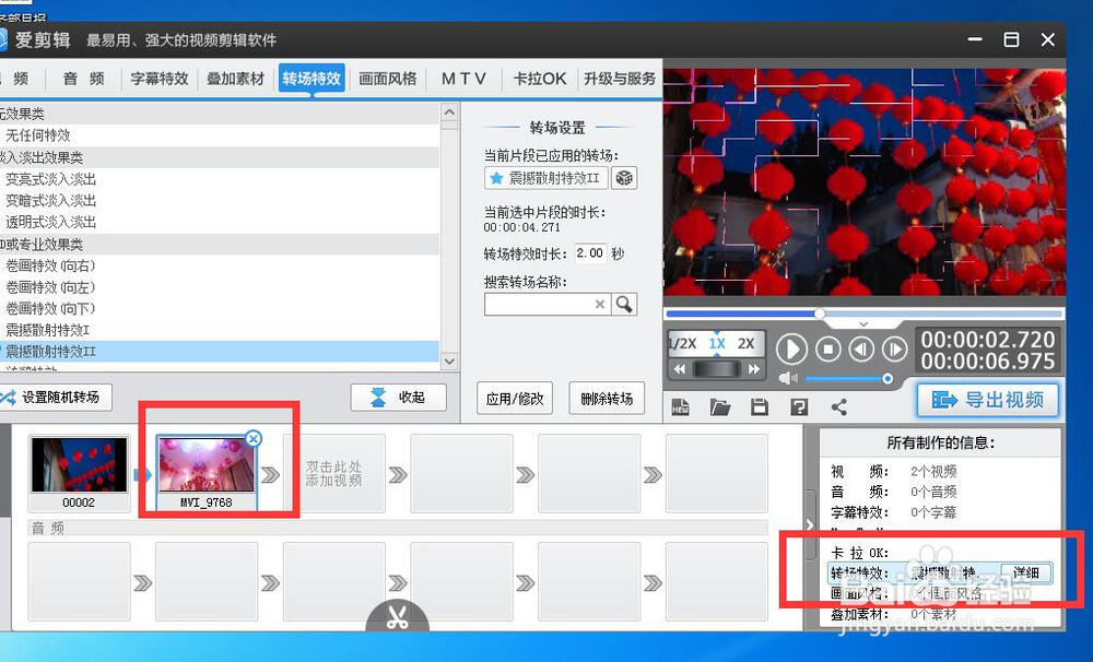 我们点击第二个视频,可以在右下角看到我们添加的转场效果。