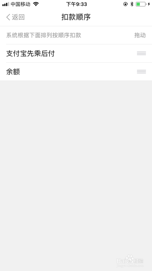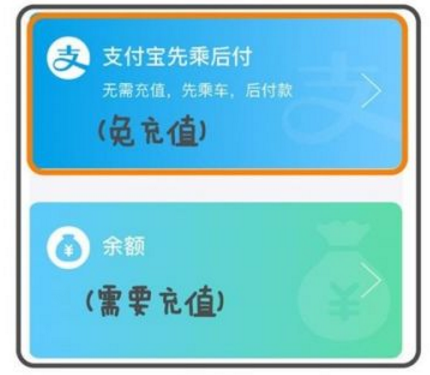 此时可以看到有两种扣款方式,一个是余额,一个是支付宝先乘后付,且在两个选项的右侧有个多横线的标志。