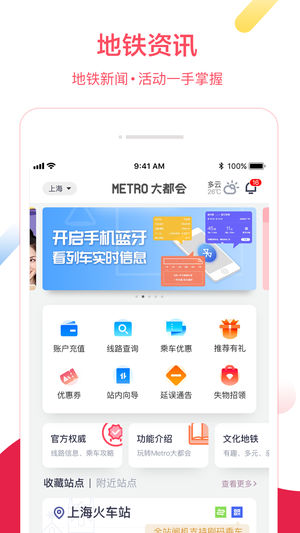 metro大都会iphone版是专为上海市民提供的一款地铁服务软件,使用app用户可以查看路线,提供手机支付功能,无需城市公交卡,乘车更便捷,还提供了最新新闻资讯、附近商圈优惠活动等信息。