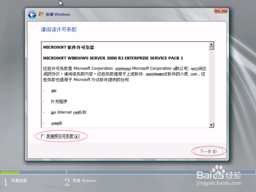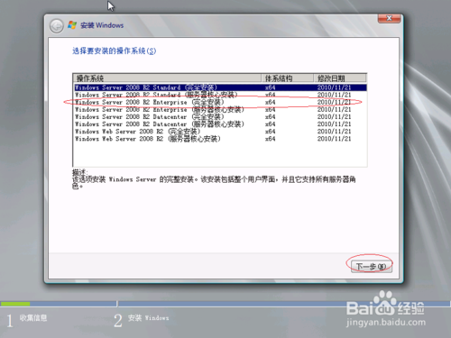 3、在这里可选择要安装的操作系统为Windows Server 2008 R2 x64企业版,如图。当然也可选择其他版本、功能上有所区别,请查阅相关资料。