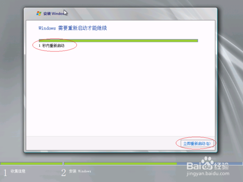11、安装过程系统会自动重启,无需干预。当然可选择立即重新启动,如图。
