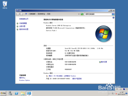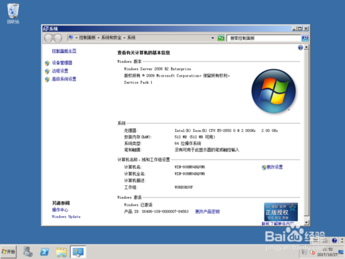 7、系统重新启动再看激活信息,如图激活完成。恭喜大家,至此安装并激活Windows Server 2008 R2 x64企业版的任务结束了。