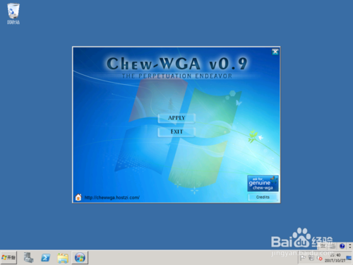 3、右键点击CHEW-WGA工具,选择以管理员身份运行。在弹出的窗口中点击APPLE按钮,如图。