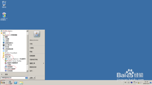 1、启动Windows server 2008 R2操作系统,如图所示。点击任务栏"开始"按钮,用于弹出开始菜单。