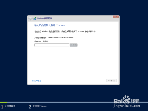 2、输入密钥,下一步