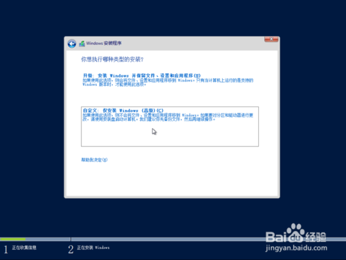 5、选下面“自定义:仅安装Windows(高级)(C)