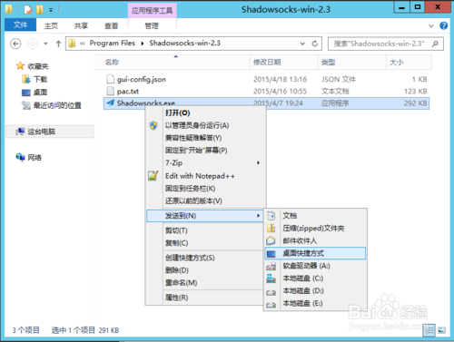 右击我们要快捷启动的应用程序,选择“发送到”“桌面快捷方式”,用来创建快捷方式。