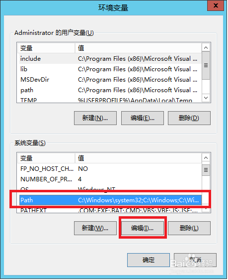 6、选中“系统变量”区域中的“path”,然后单击“编辑”。