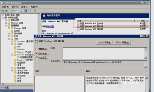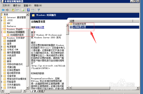 3、在“系统”下点击“windows 时间服务”选择“全局配置设置”右边有相关的解释,可以根据具体需要进行设置