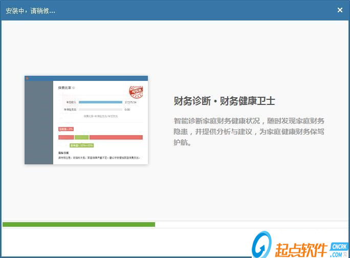 正在安装财智8,财智8可以智能诊断家庭财务状况,随时发现家庭财务的隐患,并提供分析和建议,随时为家庭财务保驾护航;