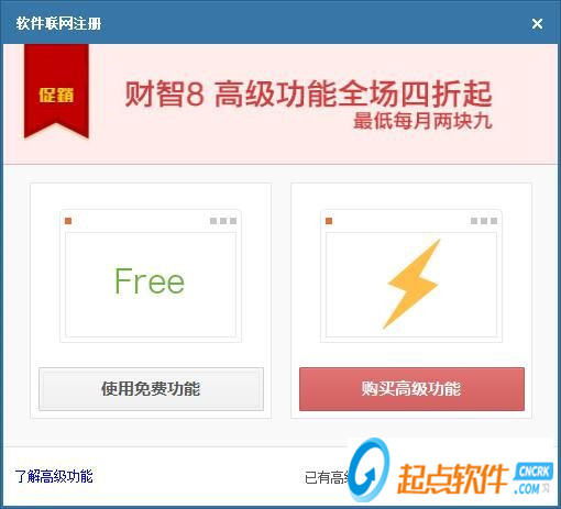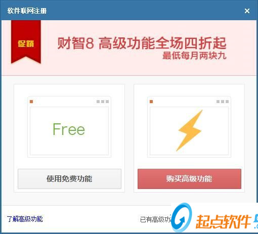 财智8需要使购买才能使用高级功能,不想购买激活的用户可以使用免费功能;