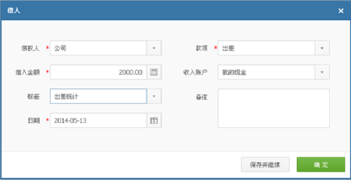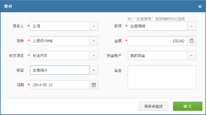 标签:如果经常出差,可考虑设置出差的标签,这样可统计出差的总收益情况。