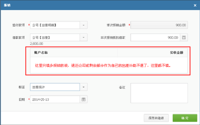 注:若有多余报销收支,则在日常收支表按“报销收入”和“报销支出”统计。