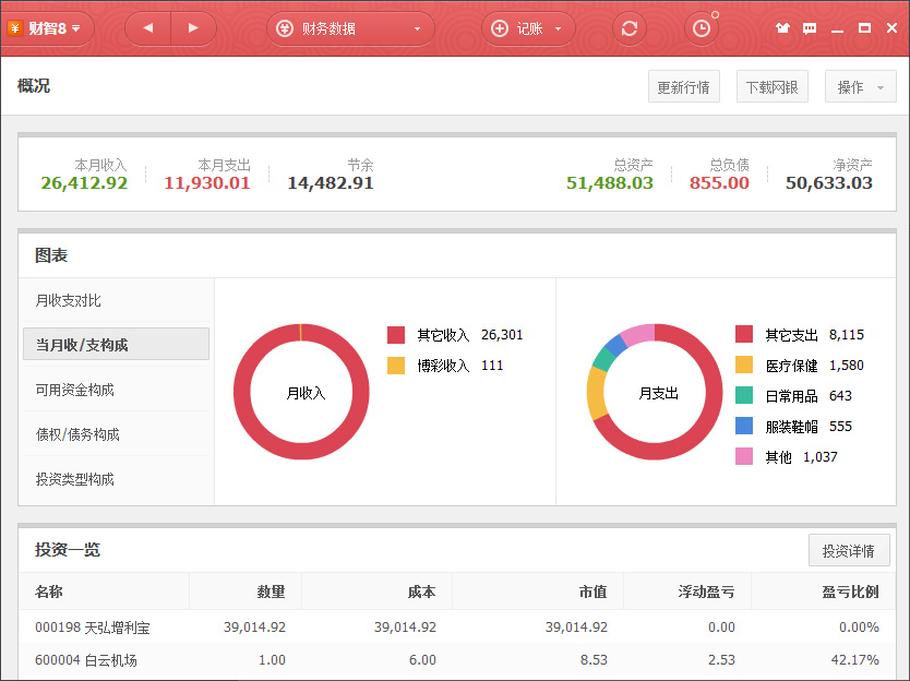 3.财智8,能管理最多类型投资的理财软件