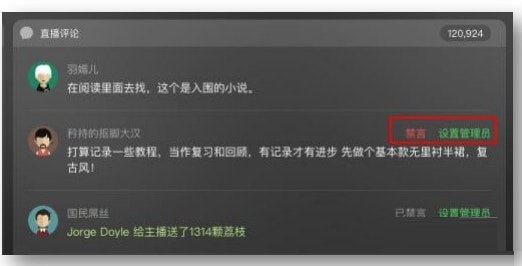 3.点击右上角的按钮,可以查看和设置管理员和禁言名单