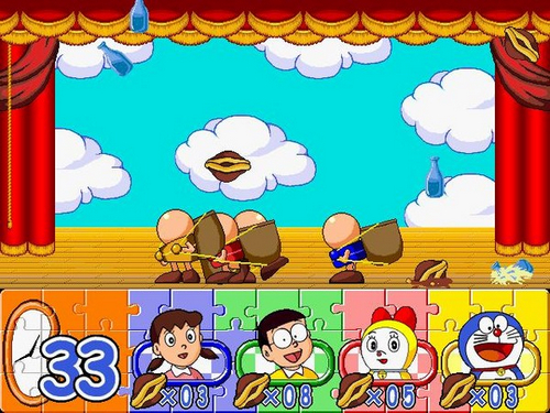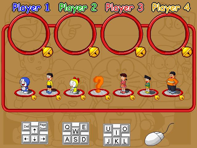 游戏内有6个角色,还有一个是隐藏角色,每个角色都有优点及缺点。哆啦A梦(叮当)