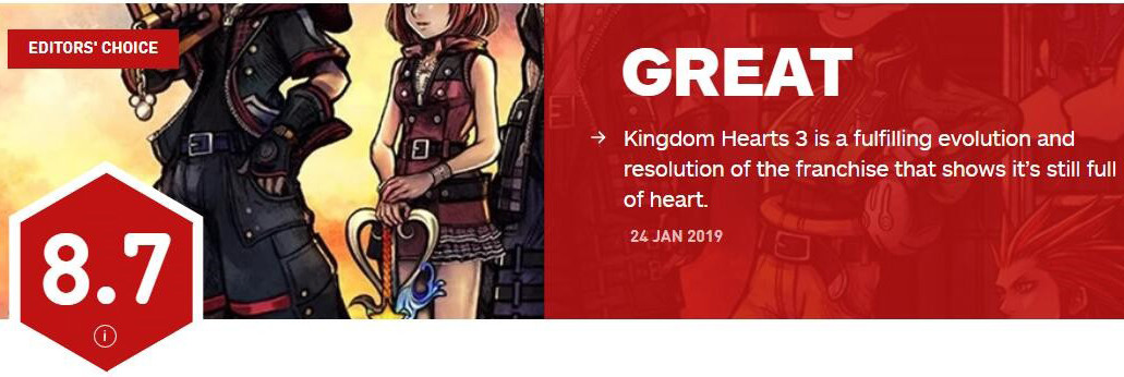 Square Enix革新了《王国之心》系列的游戏玩法、又能忠实于迪士尼旗下备受大家喜爱的动画作品。虽然本作在叙事上的爆点不是那么充足,但SE很好地抓住了这个世界的精髓,也给玩家们奉上了众多工具以供探索和战斗使用。即便是在剧情尘埃落定之后,玩家也会有继续进行游戏并收集全部物品的欲望。即便距离系列初代作品发售已经有了相当长的一段时间,《王国之心3》依然是一款“全心”之作。
