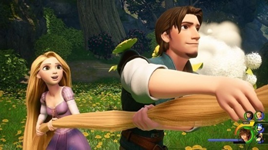 在这世界,可和乐佩、弗林使出连携技!借用乐佩的长发,痛打无心者一顿!