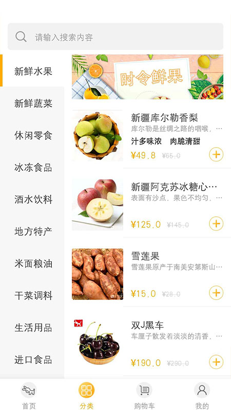 在搜索框输入关键字,即可一键搜索,享受各地美食生鲜;