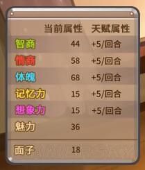 悟性:学技能消耗悟性点。技能大致分为语数外文理五科-体育-艺术-以及其他副业(影响最终职业)。