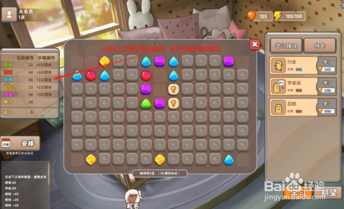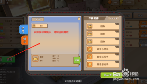 4、安排学习或者娱乐,提升当前属性,每个选项对应的属性都不相同。