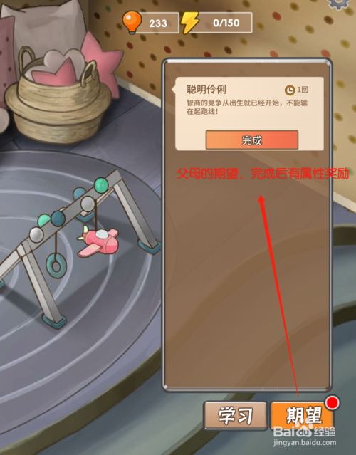 5、右侧会有父母的期望,完成期望会有属性奖励。