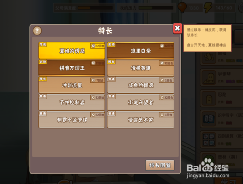 6、做完6级理财之后。选择魅力学习和娱乐的同时,同时也刷刷特长。