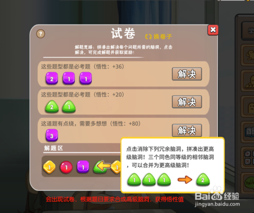 7、一定阶段会出现考试,就是通过合成不同数字的脑洞奖励悟性值。