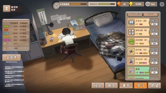 游戏中,玩家可以让孩子学艺术、学体育、学计算机,不走高考之路也能展现自己个性的一面。但大部分玩家还是非常关心自己的孩子能否考上一所理想的大学。然而,要想考到一所理想的大学绝非易事。“第一代的孩子玩得太多了,连重点高中都没上,等到第二代孩子,我就让他疯狂学习,最终我花了23代人,才终于让孩子考上了清华大学。”