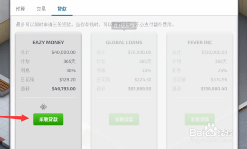 游戏一开是我们是没有任何资金的,这就是为什么说我们要从零开始。第一步我们需要去贷款,点击【财政---贷款---采取贷款】可以进行贷款。