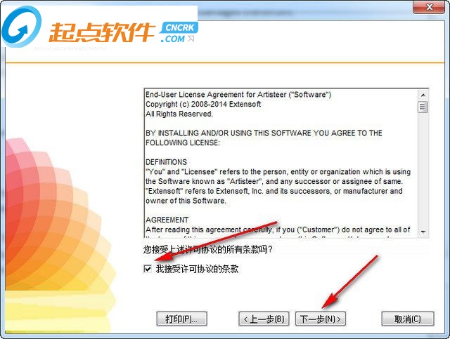 3、弹出许可协议界面后,用户仔细阅读安装许可协议,勾选“我接受许可协议的条款”,然后点击下一步。