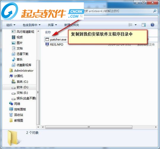 6、用户在解压包中找到我们的artisteer破解注册机机程序patcher.exe,然后将其复制到artisteer4.3的安装目录下与主程序位置的目录(一般默认为默认安装目录为:c:\Program Files\Artisteer 4\bin\,不知道安装目录的用户可以右击软件的桌面快捷方式,在呼出的选项中打开属性,然后即可打开安装目录)。