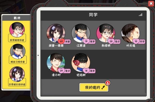 4、重磅更新——邀约系统,将在女儿版本中出现。可以在一天中的三个时段邀请同学陪你进行校园中的活动。