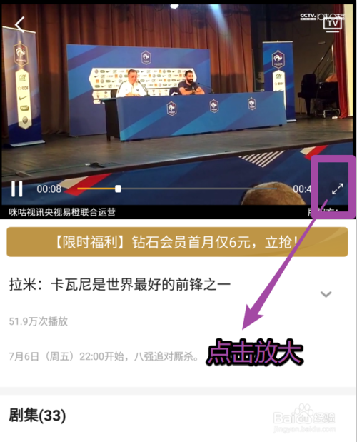 进入视频播放,点击视频右下角【放大】图标进入全屏播放