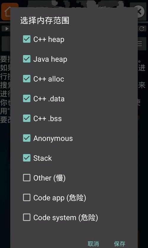 C、游戏属性值的搜索 1.在游戏中点击Guardian图标 2.点击“搜索”选项卡 3.点击“搜索”按钮进行搜索属性值 4.按“返回”键继续你的游戏 5.重复1〜 3步骤,直到找到确切的地址 6.点击地址,并将其保存 7.点击清除按钮,以搜索游戏中下一个属性值