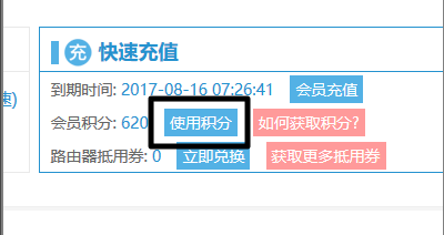 登陆后,就会自动进入会员中心,然后找到页面右边的“使用积分”按钮