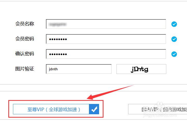 首先点击右上角的"注册",打开注册页面,产品选择默认的"至尊vip(全球游戏加速)"即可
