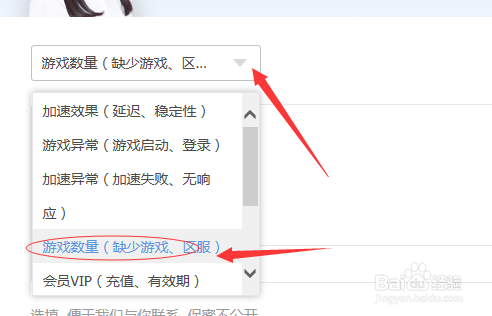 然后会弹出反馈界面,然后在反馈类型中,点击边上的“▽”,然后选择“游戏数量(缺少游戏/服)”选项。
