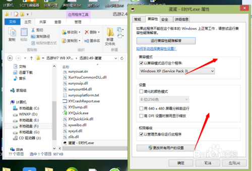 打开迅游,右击软件-属性-兼容性,勾选以兼容模式运行这个程序 以身份运行此程序