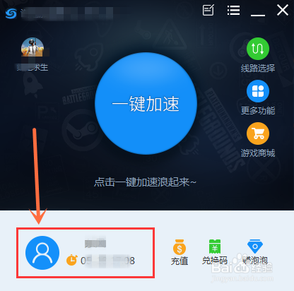 打开泡泡加速器,进入页面,将鼠标放在头像上,如图