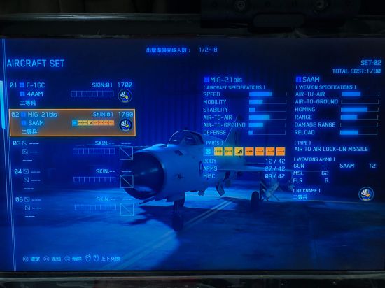 M1-MIG-21 PYRD本关的冠名机出现条件为同时大量击坠敌机,所以出击之前务必带上4AAM或者8AAM。起飞后击坠前两波敌机后,在地图中央靠左的位置出现第三波敌机增援,是并列飞行的两架轰炸机和两架米格21,使用复数锁定的导弹一口气全部击坠即可。