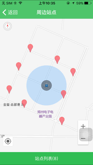 4、郑州交通出行app查询当前位置附近站点及经过站点的公交线路列表;