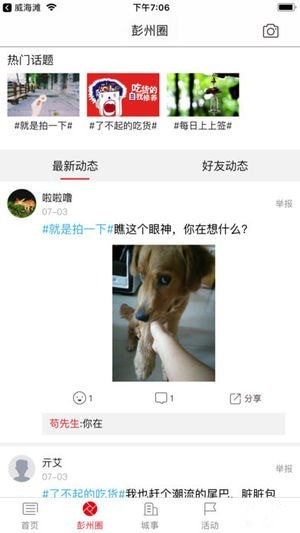 身边趣事、突发状况即时上传品鉴彭州app,照片视频随手拍,人人都是参与者。
