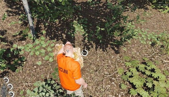 游戏中,有很多物品是可以互动的,例如,这种灌木,按F就能搜索,